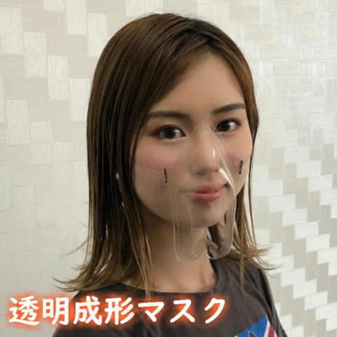 真空成型によって立体的に透明素材を加工したマスクです。透明なので、口元がしっかりと見せられるのが特徴です。